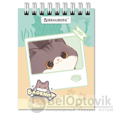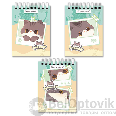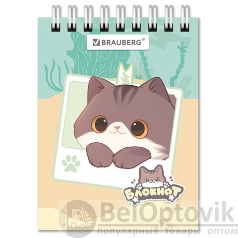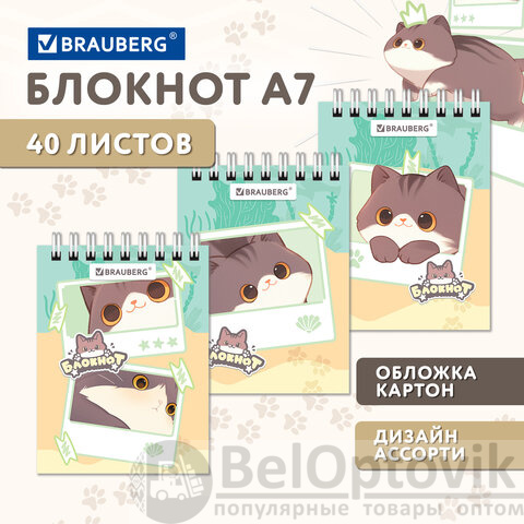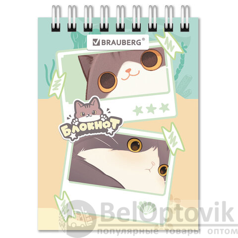 Блокнот МАЛЫЙ ФОРМАТ А7, 75х105 мм, 40 л., гребень, клетка, кросс-серия "МИЛЫЕ КОТЫ", BRAUBERG, 116988