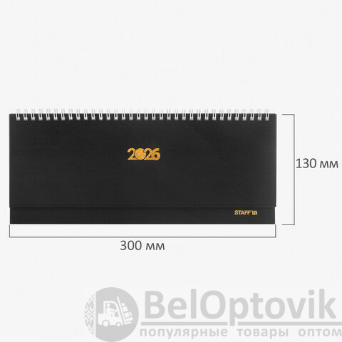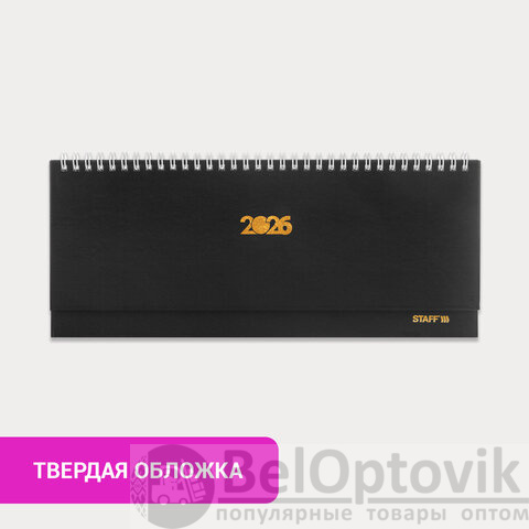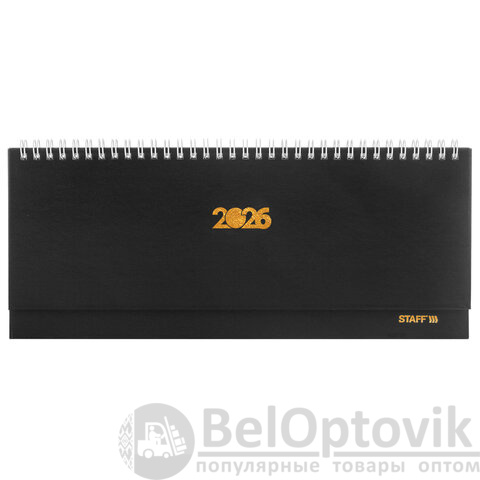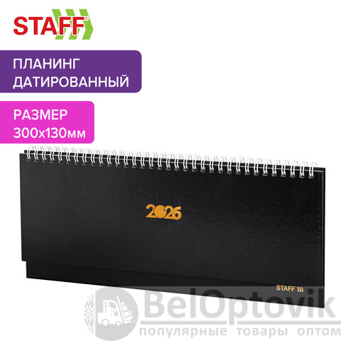 Планинг датированный 2026 300х130 мм, STAFF, гребень, обложка бумвинил, 64 л., черный, 117360
