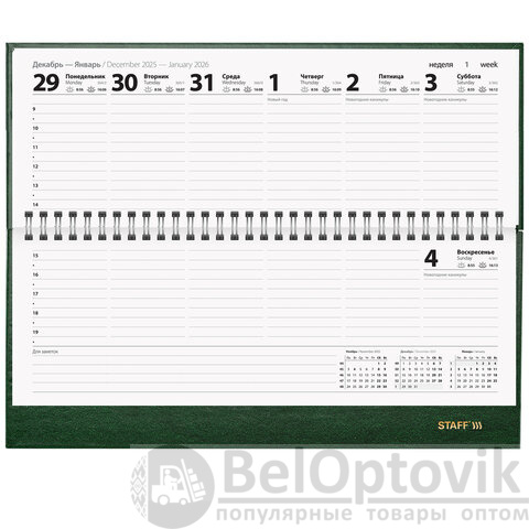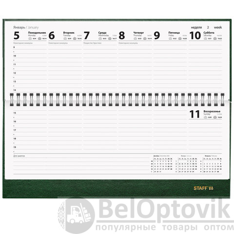 В датированном планинге STAFF все дни недели расположены на одном развороте, благодаря чему очень удобно планировать важные дела на неделю вперед.