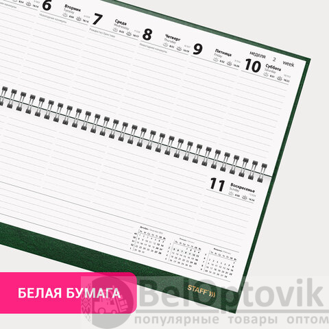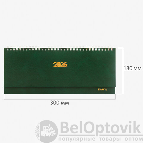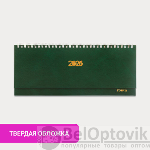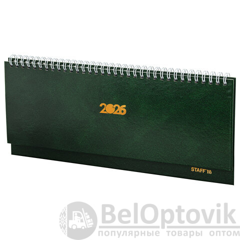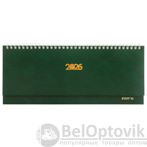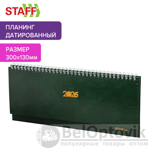 Планинг датированный 2026 300х130 мм, STAFF, гребень, обложка бумвинил, 64 л., зеленый, 117361