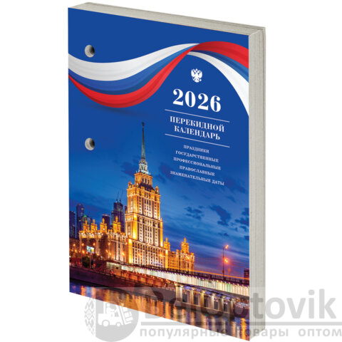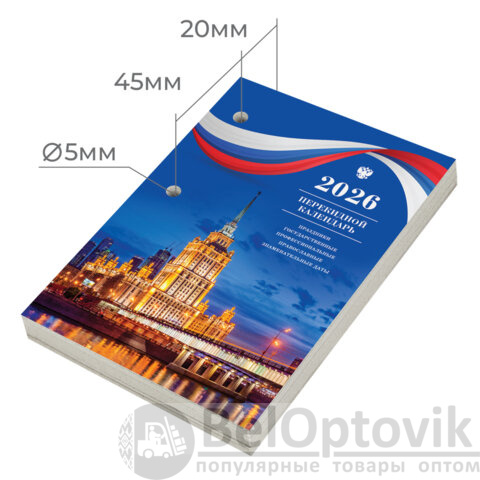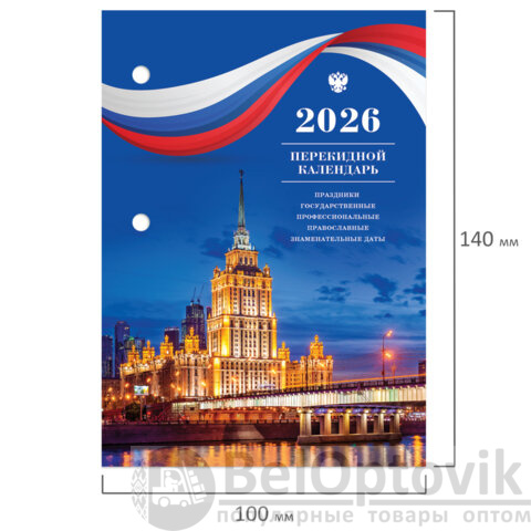 Блок календаря на 2026 год напечатан на газетной бумаге плотностью 55 г/м2 в 1 краску. Справочная информация на 160 листах: календарь на текущий месяц, часы восхода и захода солнца, долгота дня, лунный календарь, праздники.