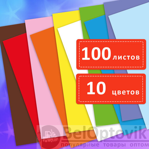 Немелованная двусторонняя цветная бумага окрашивается непосредственно в процессе изготовления и обладает плотностью 80 г/м2. Набор включает 100 листов формата А4 (210х297 мм) в 10 разнообразных и насыщенных однородных цветах. Бумага уложена в прочную картонную коробку и упакована в полиэтиленовый пакет с липким краем – листы точно не помнутся. Легко режется и сгибается.