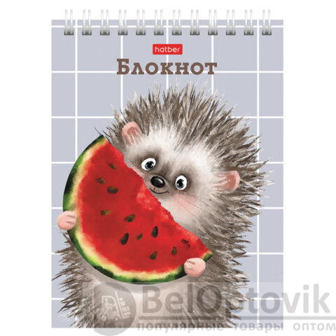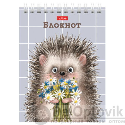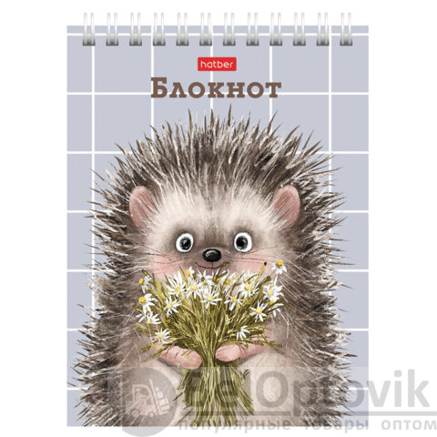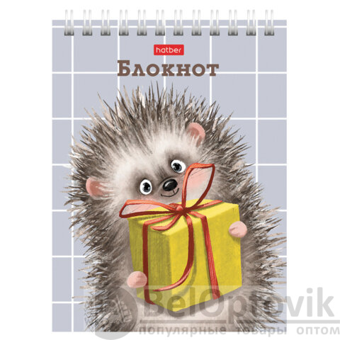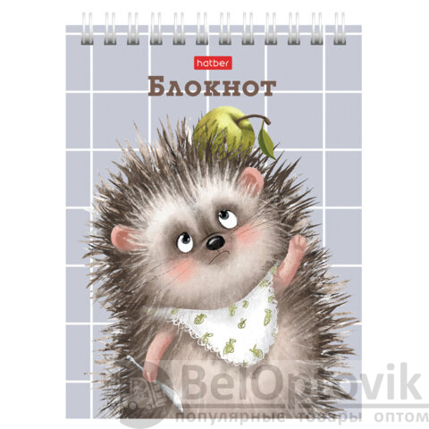 Блокнот МАЛЫЙ ФОРМАТ А6, 40 л., гребень, картон, клетка, HATBER, "Хорошо быть ёжиком", 080472, 40Б6В1гр