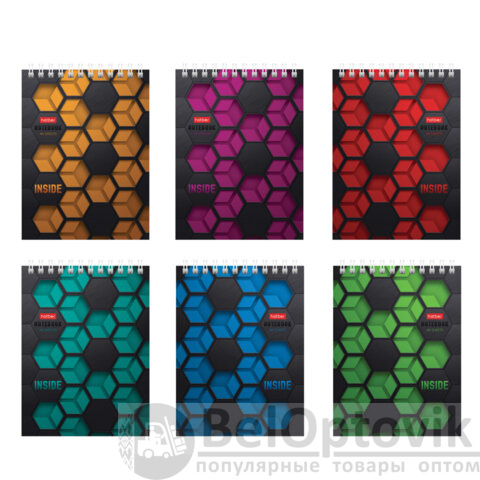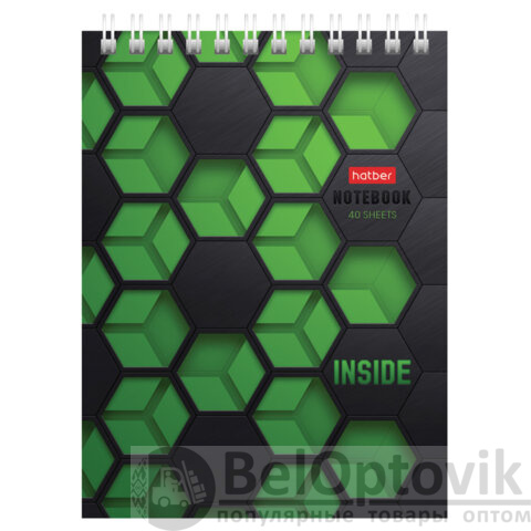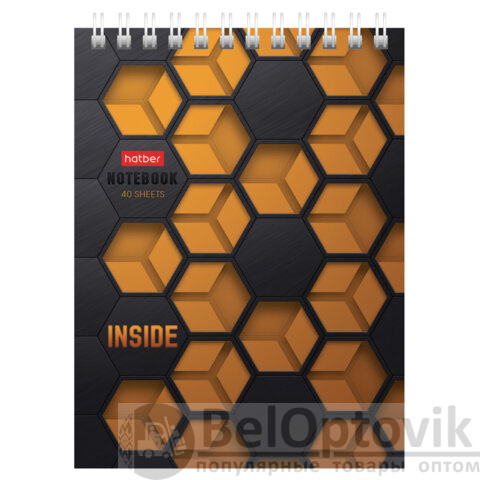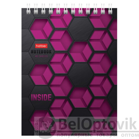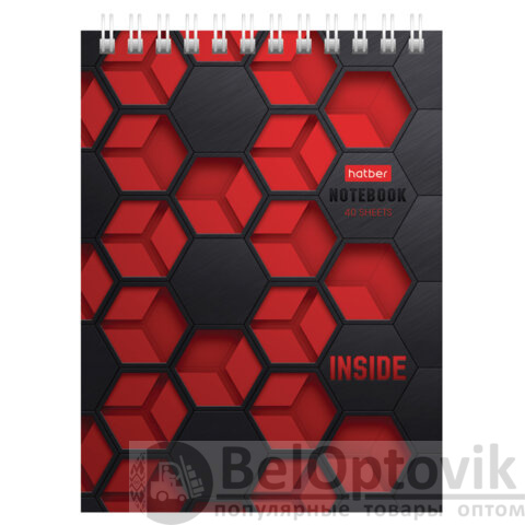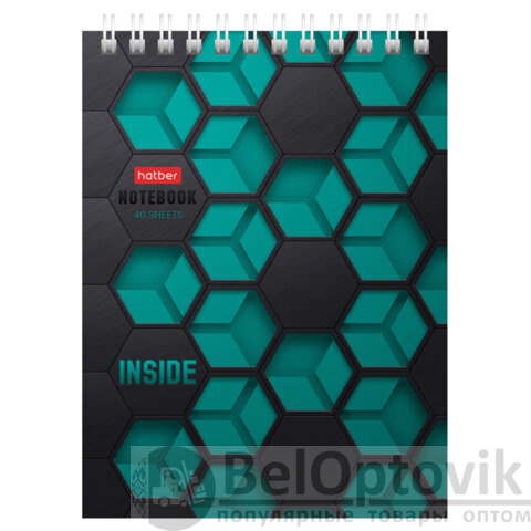 Блокнот МАЛЫЙ ФОРМАТ А6, 40 л., гребень, картон, клетка, HATBER, "INSIDE", 080475, 40Б6В1гр