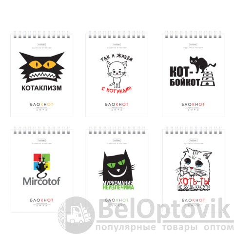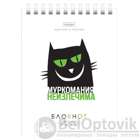 Блокнот МАЛЫЙ ФОРМАТ А6, 40 л., гребень, картон, клетка, HATBER, "Муркомания", 090640, 40Б6В1гр