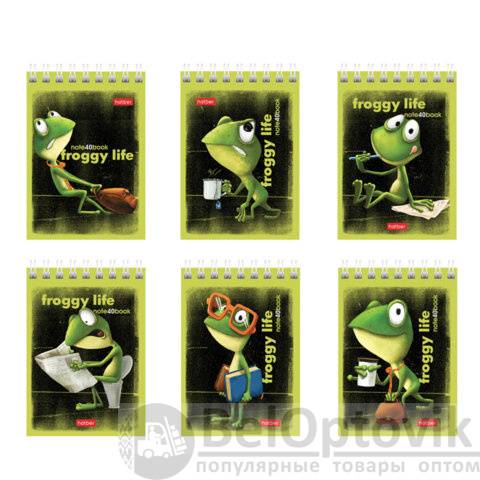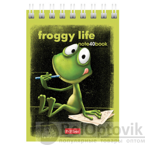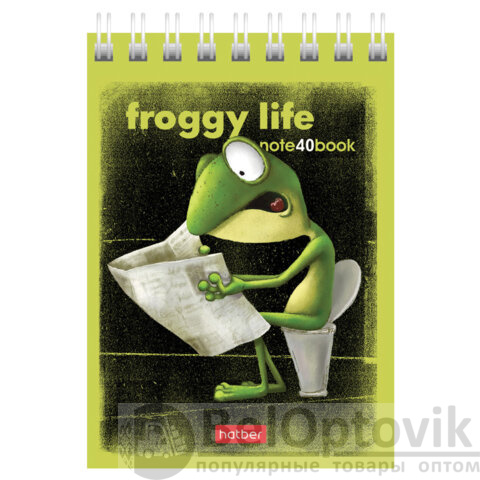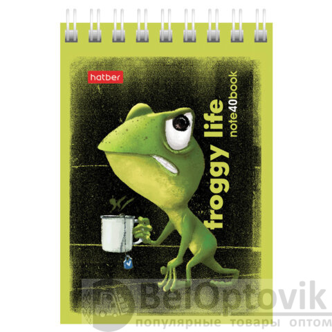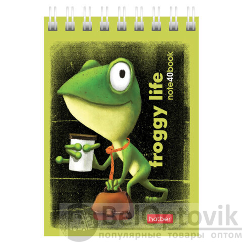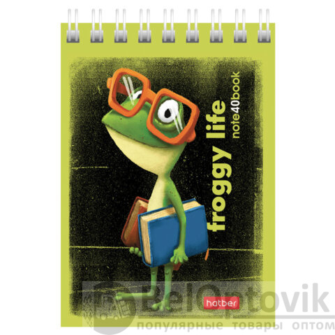 Блокнот МАЛЫЙ ФОРМАТ А7, 40 л., гребень, картон, клетка, HATBER, "Лягух Кир", 081184, 40Б7В1гр