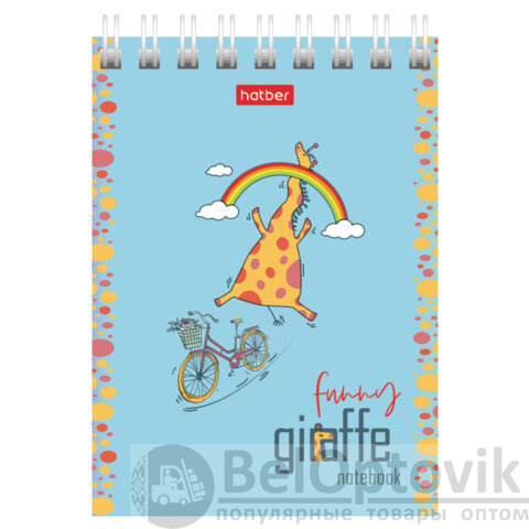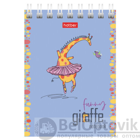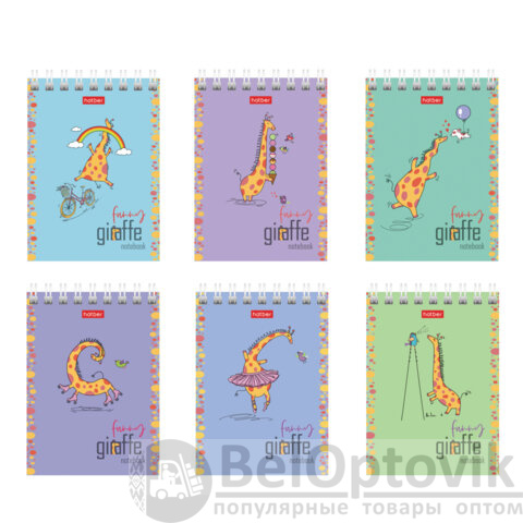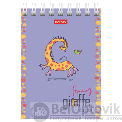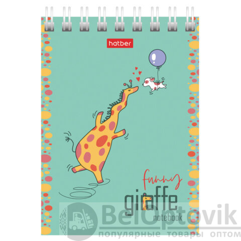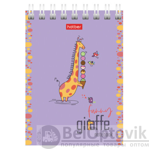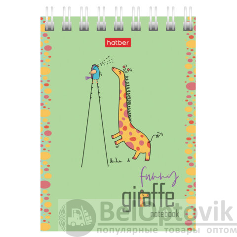 Блокнот МАЛЫЙ ФОРМАТ А7, 60 л., гребень, картон, клетка, HATBER, "Веселый жираф", 081165, 60Б7В1гр