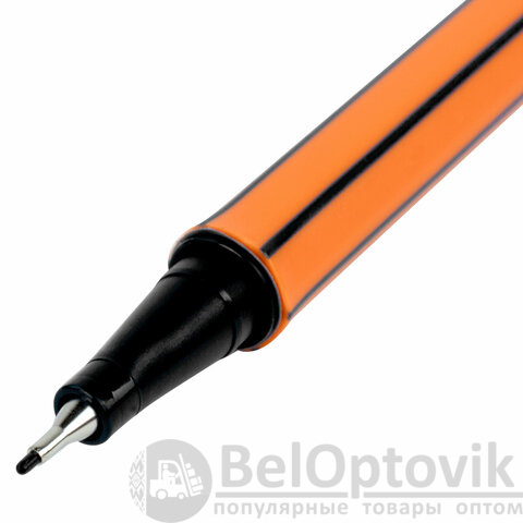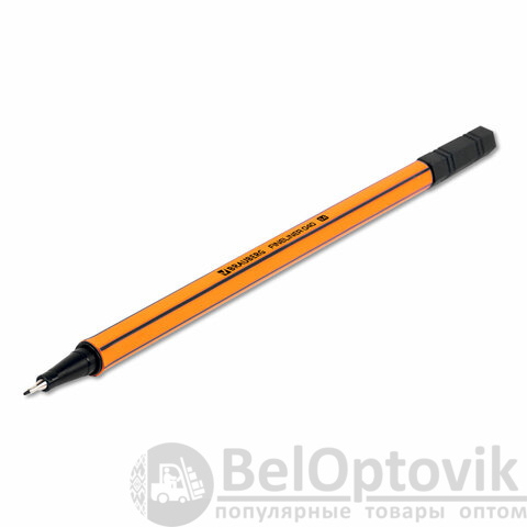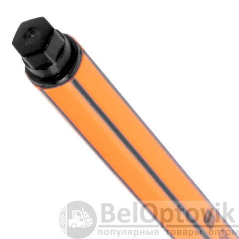 Ручка капиллярная имеет шестигранную форму корпуса оранжевого цвета. Благодаря такой форме корпуса изделие удобно располагается в руке. Супертонкий износостойкий металлический наконечник 0,4 мм идеально подходит для создания точных и аккуратных линий. Цвет колпачка соответствует цвету черных чернил.