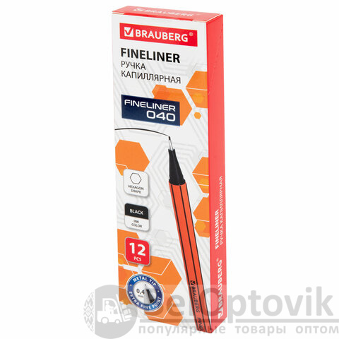 Ручка капиллярная (линер) ЧЕРНАЯ, BRAUBERG "FINE 040", шестигранная, линия письма 0,4 мм, 144139