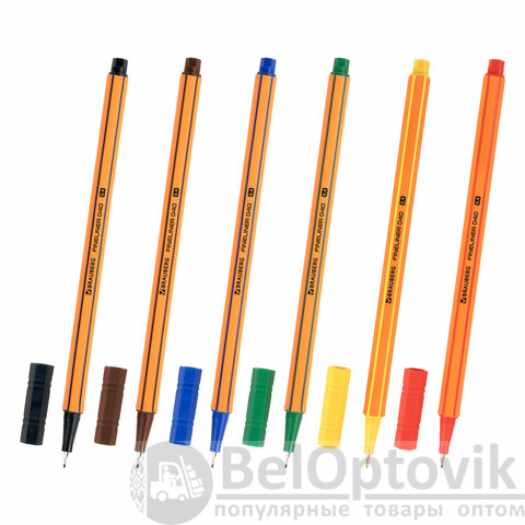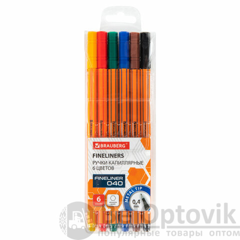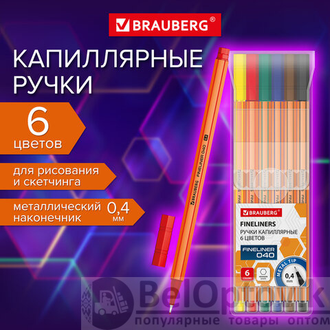 Набор капиллярных ручек BRAUBERG "FINE 040" состоит из 6 ярких цветов: желтый, красный, зеленый, синий, коричневый, черный.