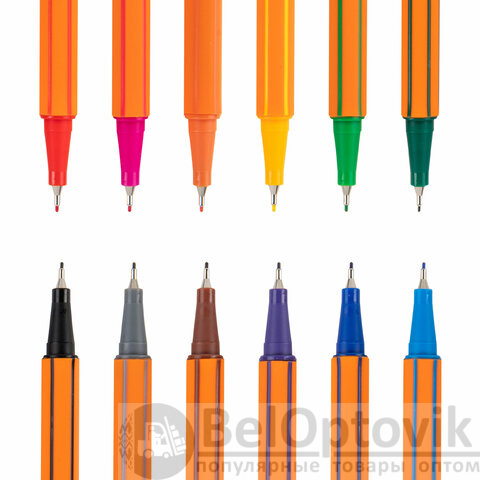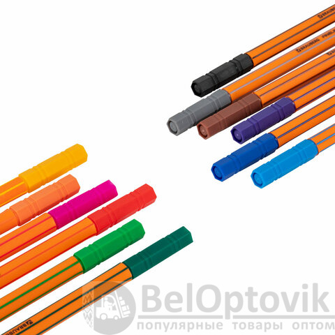 Набор капиллярных ручек BRAUBERG "FINE 040" состоит из 12 ярких цветов: желтый, оранжевый, розовый, красный, светло-зеленый, зеленый, голубой, синий, фиолетовый, коричневый, серый, черный.