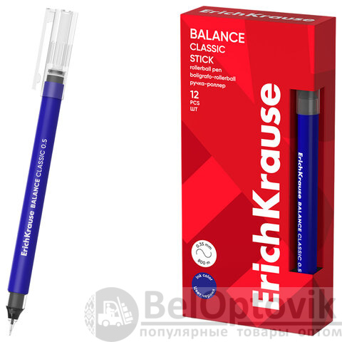 Ручка-роллер ERICH KRAUSE "Balance Stick Classic", СИНЯЯ, линия 0,35 мм, 63147