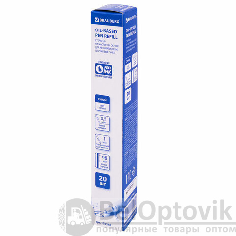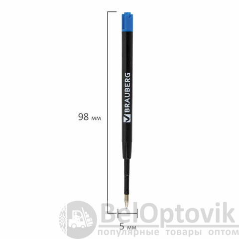 Стержень шариковый масляный BRAUBERG, СИНИЙ, тип PARKER, 98 мм, пластиковый корпус, линия письма 0,5 мм, 170348