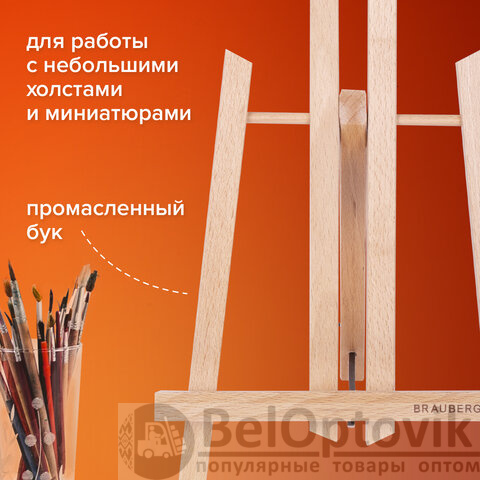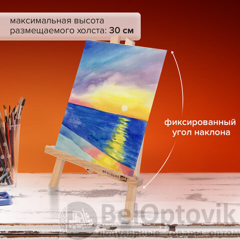 Мольберт настольный из бука 19х16х28 см, высота холста до 30 см, лакированный, BRAUBERG ART CLASSIC, 192253