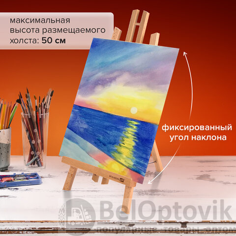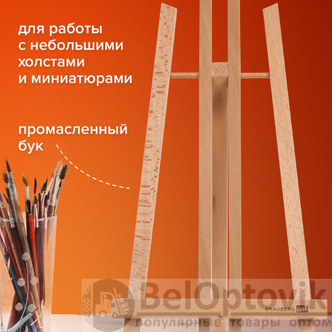 Мольберт настольный из бука 24х30х46 см, высота холста до 50 см, лакированный, BRAUBERG ART CLASSIC, 192255
