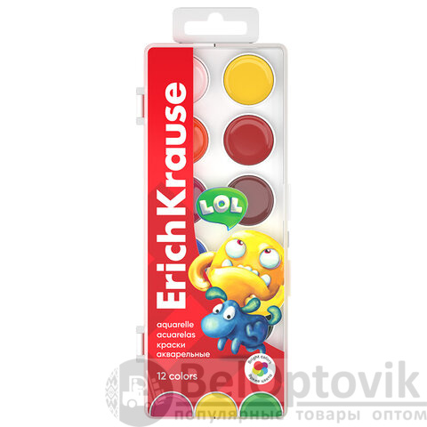 Краски акварельные ERICH KRAUSE "Jolly Friends", 12 цветов, пластиковый пенал, европодвес, 61366