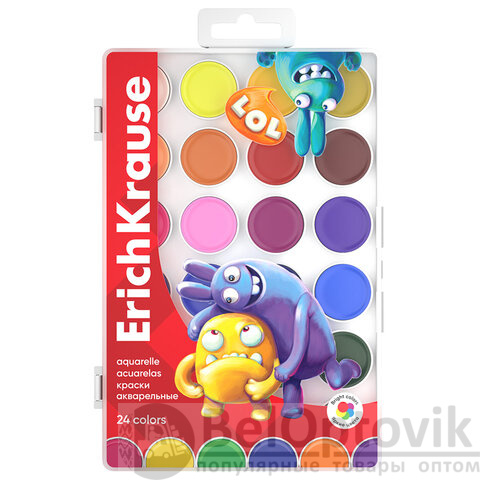 Краски акварельные ERICH KRAUSE "Jolly Friends", 24 цвета, пластиковый пенал, европодвес, 61368