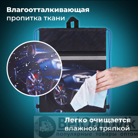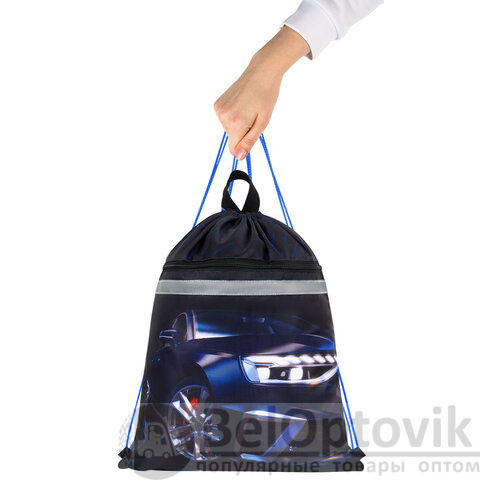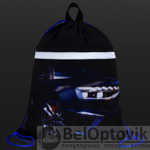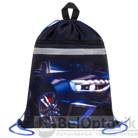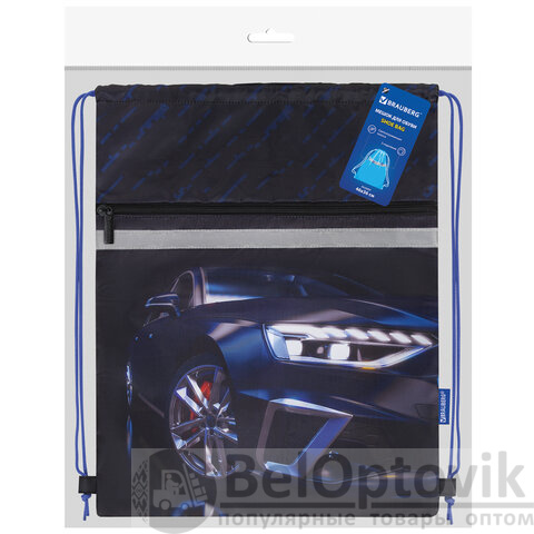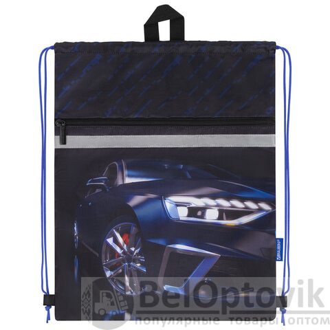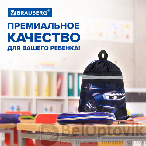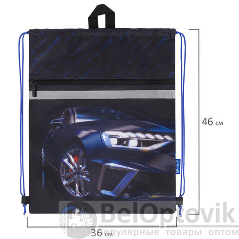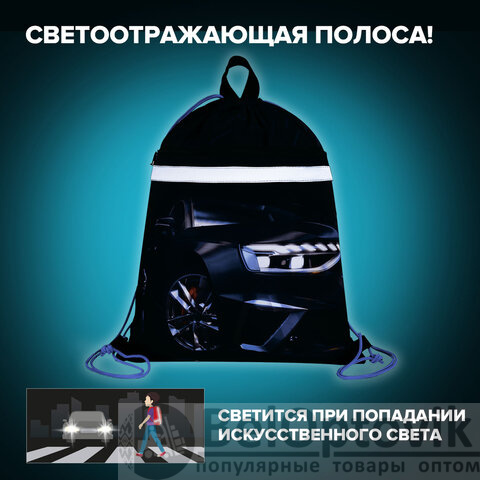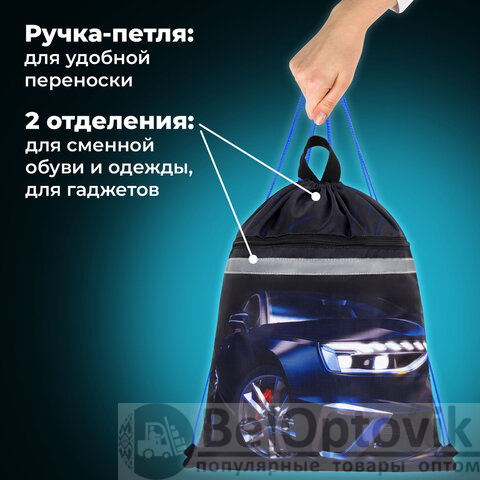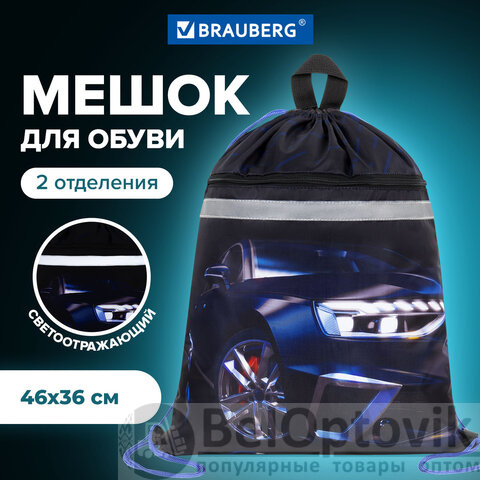 Мешок для обуви BRAUBERG, с петлей, светоотражающая полоса, 2 отделения, 46х36 см, Super car, 272397