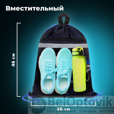 Мешок для обуви BRAUBERG – необходимый аксессуар в школе. Подходит для сменной обуви и физкультурной формы, вещей для факультативных занятий. Можно носить на плечах за спиной или в руке с помощью петельки.