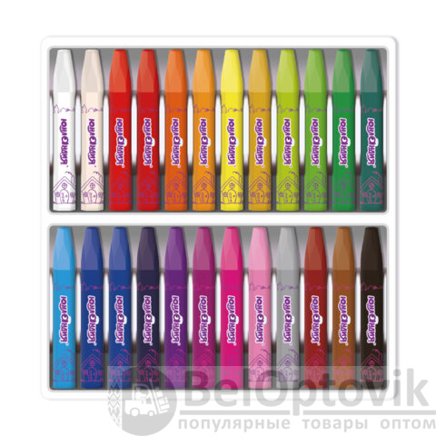 Палитра состоит из 24 ярких и насыщенных цветов. Мелки полностью безопасны в использовании, не токсичны и не имеют резкого запаха. Благодаря своему составу пишут мягко, ребенку не придется прикладывать усилия в процессе рисования.