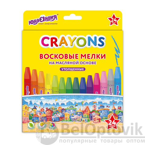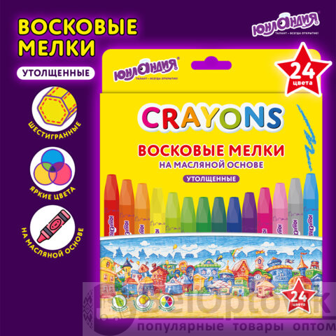 Восковые мелки утолщенные на масляной основе ЮНЛАНДИЯ "ДОМИКИ", 24 цвета, 273091
