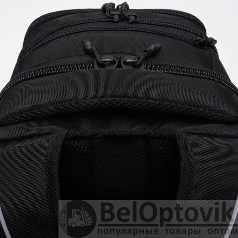 Чтобы при полной загрузке школьного рюкзака меньше уставала спина, производитель сделал жесткую анатомическую спинку с накладками и нагрудную стяжку со свистком – благодаря ей школьник сохраняет правильную осанку.