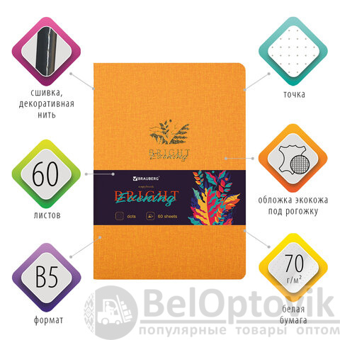 Практичная тетрадь BRAUBERG BRIGHT для учебы и работы. Обложка тетради изготовлена из высококачественного и износоустойчивого материала "Экокожа".