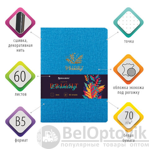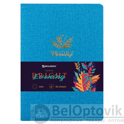 Тетрадь 60 л. в точку обложка кожзам под рогожку, сшивка, B5 (179х250мм), ГОЛУБОЙ, BRAUBERG BRIGHT, 403849