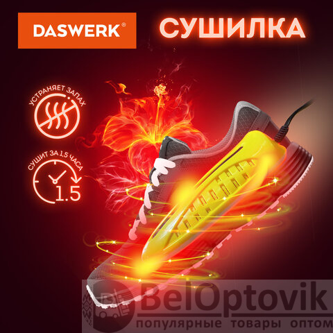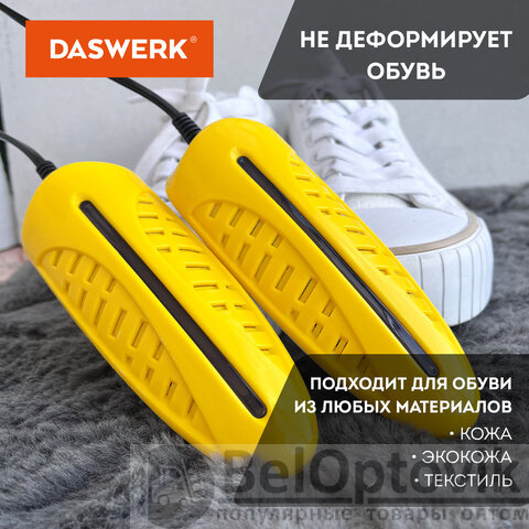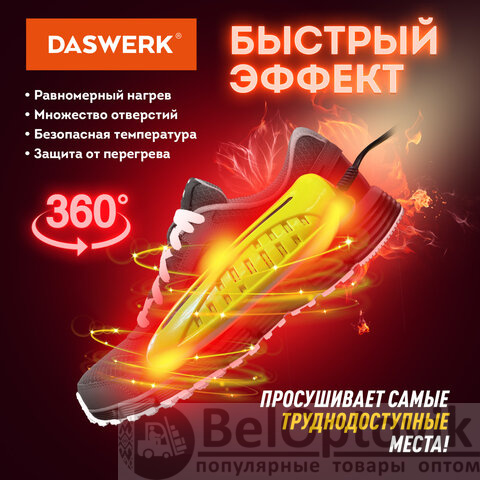 Сушилка для обуви DASWERK создана для бережного и безопасного ухода за обувью. Особая технология нагрева уничтожает неприятный запах и дезинфицирует обувь, а эргономичная форма позволяет просушить даже самые труднодоступные места.