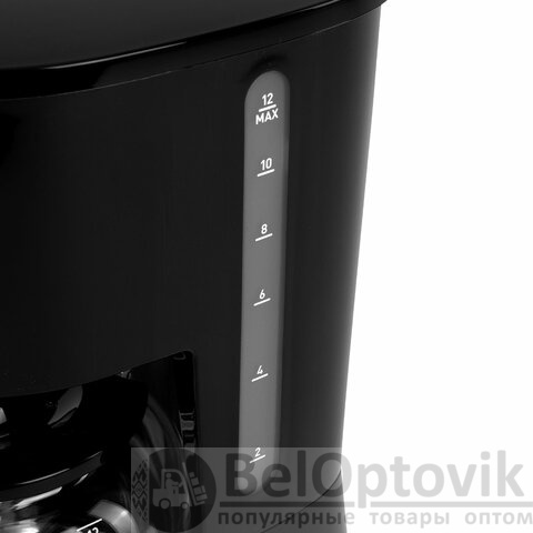 Кофеварка оснащена многоразовым нейлоновым фильтром, который удобно мыть после использования. Корпус из прочного пластика обеспечивает долговечность и надёжность устройства. Резервуар ёмкостью 1,8 л позволяет за один раз приготовить кофе на 14 чашек объёмом 120 мл. Прозрачный корпус кофейника позволяет всегда видеть, сколько кофе осталось.