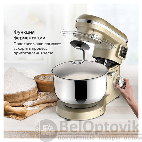 Отличительной особенностью данного миксера является функция подогрева чаши с таймером. Она позволяет поддерживать оптимальную температуру для теста и ускоряет его процесс ферментации. Чаша из качественной нержавеющей стали обеспечивает долговечность и легкость в уходе, а сенсорный LED-дисплей делает управление устройством интуитивно понятным и комфортным.