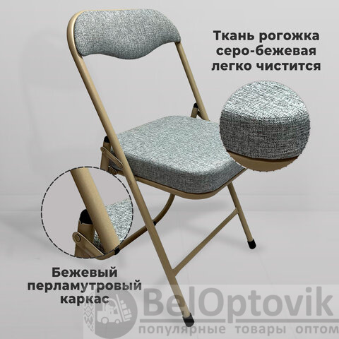 Стул складной для дома и офиса РС04К комфорт, бежевый перламутровый каркас, рогожка бежевая