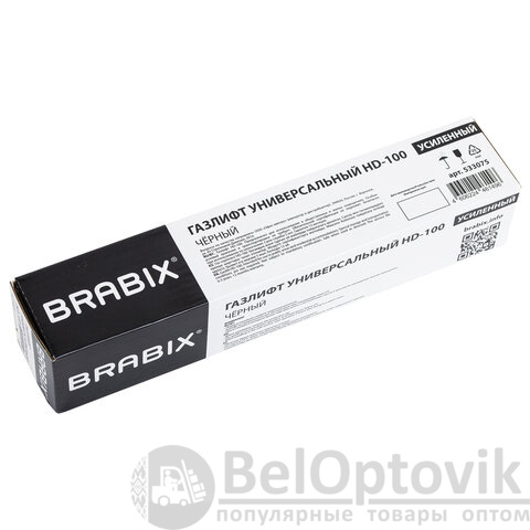 Газлифт прочный BRABIX HD-100 короткий, черный, в открытом виде 346 мм, d 50 мм, класс 4, 533075