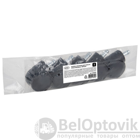 Колеса (ролики) для кресла, пластиковые, КОМПЛЕКТ 5 шт., шток d 11 мм, черные, в пакете, WBZ, 533082