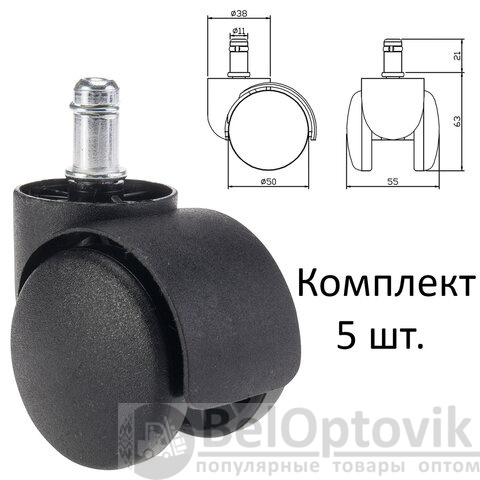 Комплект роликов для офисных кресел. Стандартный размер штока 11х21 мм совместим с подавляющим большинством моделей кресел.