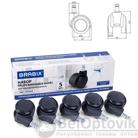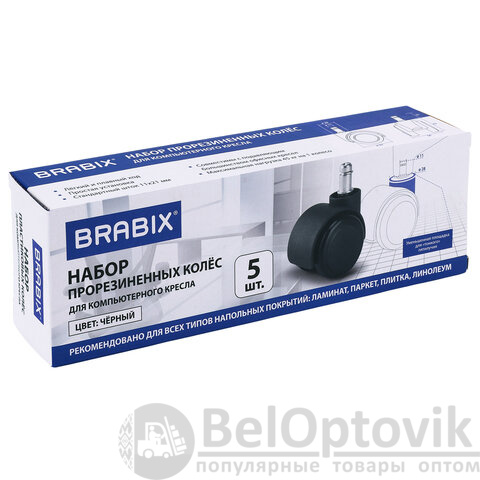 Колеса (ролики) BRABIX для кресла, прорезиненные, SLIM, КОМПЛЕКТ 5 шт., шток d 11 мм, черные, 533084