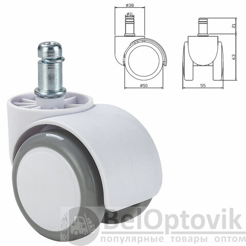 Комплект роликов для офисных кресел. Стандартный размер штока – 11х21 мм. Максимальная нагрузка – 45 кг на 1 колесо.
