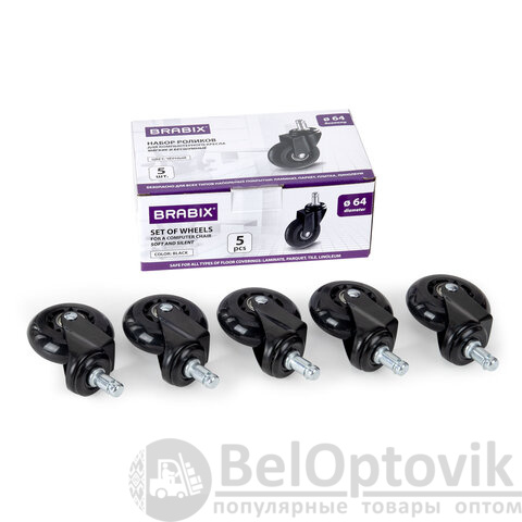 Комплект мягких бесшумных роликов BRABIX для компьютерных кресел.