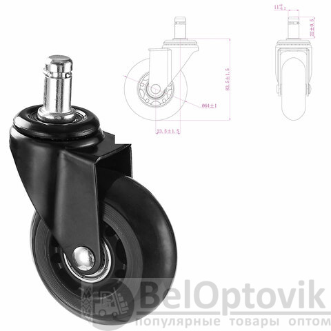 Стандартный размер штока – 11х22 мм. Максимальная нагрузка – 50 кг на 1 колесо. Мягкое полиуретановое покрытие обеспечивает совершенно бесшумный ход и надёжно защитит пол от повреждений. Рекомендованы для ламината, паркета, плитки, линолеума.