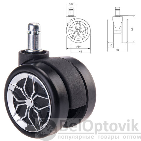 Комплект роликов для компьютерных кресел. Стандартный размер штока - 11х22 мм.