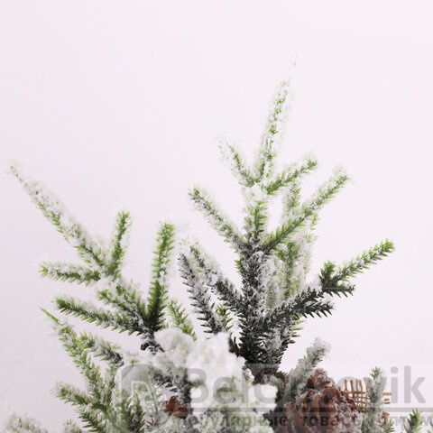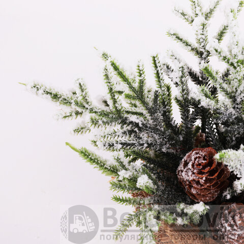 - Декор: декоративные сосновые шишки, искусственный белый снег