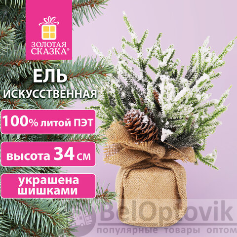 Ель новогодняя искусственная настольная 34 см с шишками, литой ПЭТ, ЗОЛОТАЯ СКАЗКА, 592012