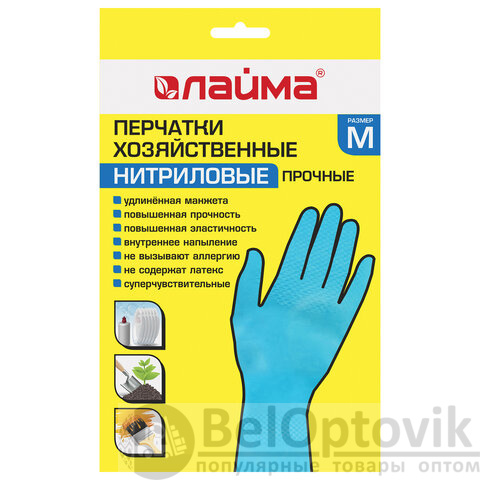 Перчатки хозяйственные LAIMA защищают руки от воздействия грязи, влаги, моющих и чистящих средств при любых бытовых и хозяйственных работах: мытьё посуды, стирка белья, уборка, садоводческая работа и т.д.