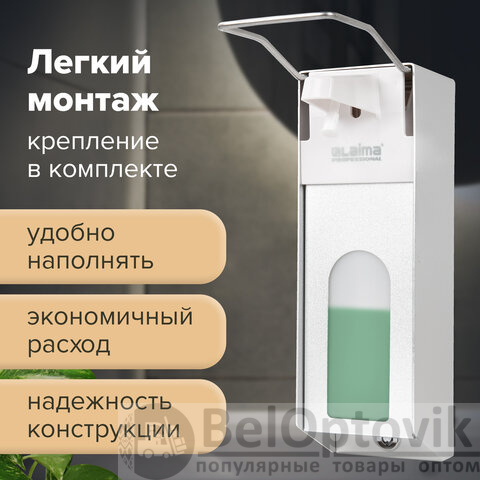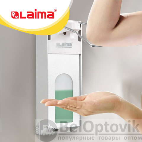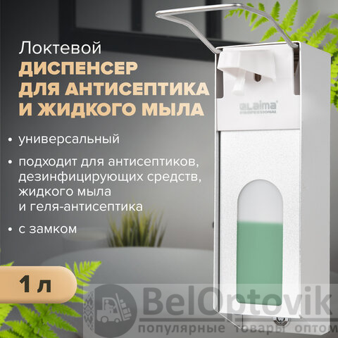 Дозатор локтевой для антисептика и мыла с замком УНИВЕРСАЛЬНЫЙ, с еврофлаконом 1 л, LAIMA, металлический, 607328, X-CL268