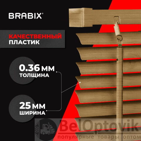 Жалюзи горизонтальные BRABIX 40х155 см, ПЛАСТИК, под дерево, бежевый, 608616