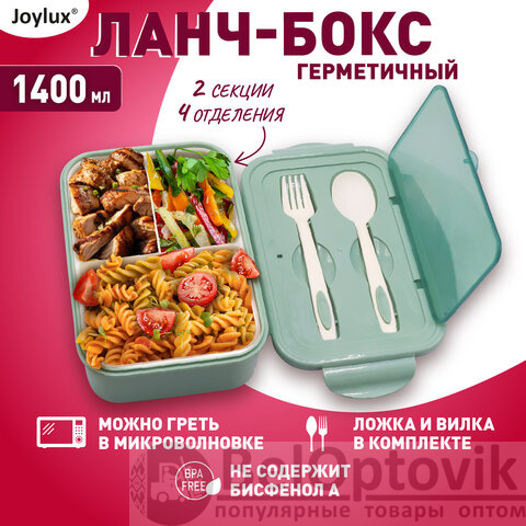 Многофункциональный герметичный ланч-бокс Joylux объемом 1400 мл имеет два уровня на ваш выбор и изготовлен из пластика высокого качества – это универсальное и безопасное решение для полноценного приема пищи в офисе, школе, поездках и путешествиях!