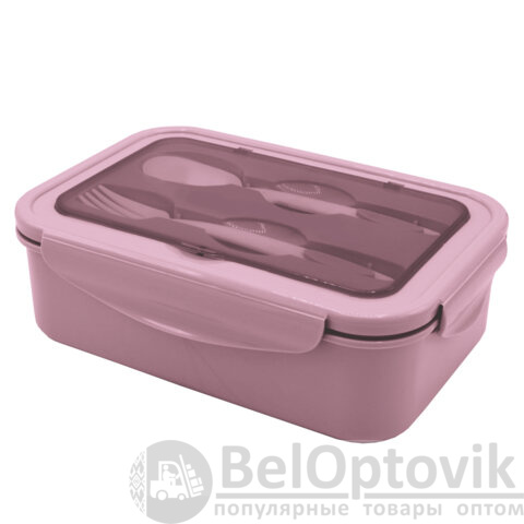 Ланч-бокс контейнер 2 секции 3+1 отделение 1,4л ложка, вилка 7х21х14см, розовый JOYLUX, 609348