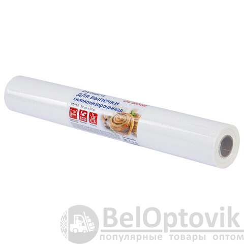 Бумага для выпечки характеризуется высокой степенью жиростойкости и влагостойкости, не прилипает к тесту и форме, а также предотвращает пригорание. Выдерживает температуру до 230 °С. Подходит для многоразового использования. Плотность – 35 г/м2. Размер рулона – 38 см x 50 м.