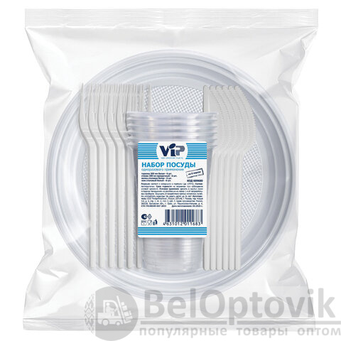 Набор одноразовой посуды на 6 персон включает в себя 24 предмета: