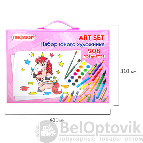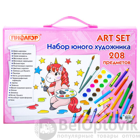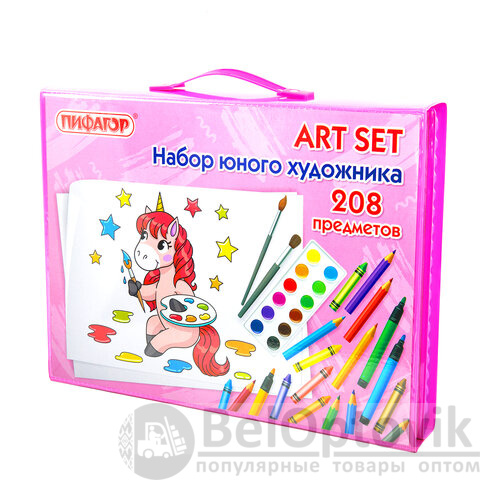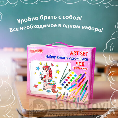 Набор ЮНОГО ХУДОЖНИКА "Единорог" для рисования и творчества с мольбертом ПИФАГОР, 208 предметов, 664631